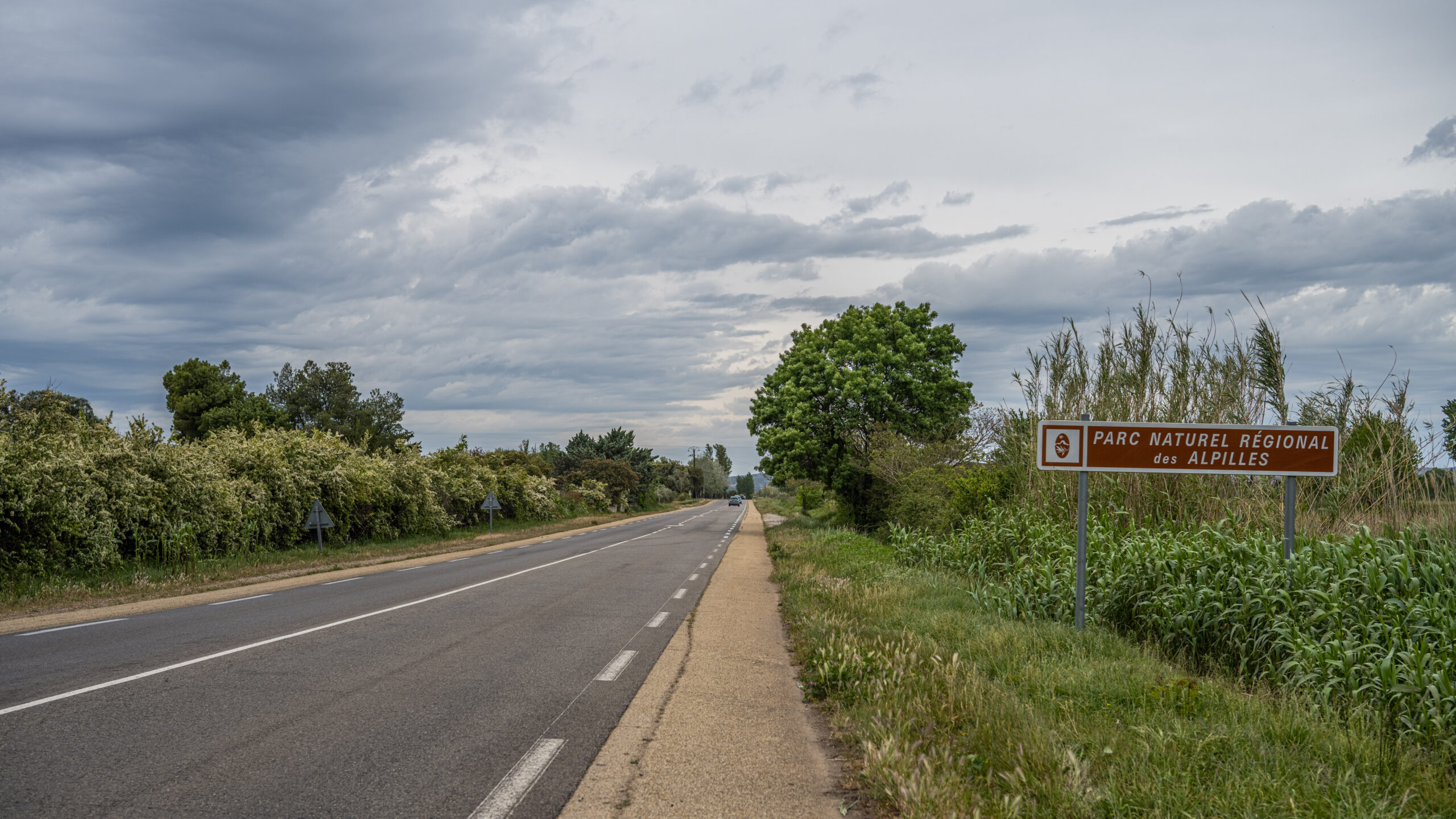 Was jedoch nach dem ersten, schönen Aufstieg folgte, war eine Art Mini-Zusammenfassung meiner gesamten Reise: Die Strecke von Châteauneuf-les-Martigues nach Istres verkam immer mehr zur Autobahn, zu welcher es aufgrund des engen umliegenden Tals keine Alternative zu geben schien. Ich war froh um meine Kopfhörer mit Lärmunterdrückung, dank denen ich schöne Musik und Podcasts hören konnte. In Istres angekommen war meine Motivation jedoch am Boden, ähnlich wie nach dem Beginn meiner Tour durch die Industrielandschaften südlich von Lyon. Auf dem absolut flachen und geraden, ca. 20 Kilometer langen Streckenabschnitt durch die wüstenartige Gegend zwischen Istres und Mouriès war ich dankbar für den kräftigen Rückenwind, der mir Durchschnittsgeschwindigkeiten von um die 30km/h bescherte.