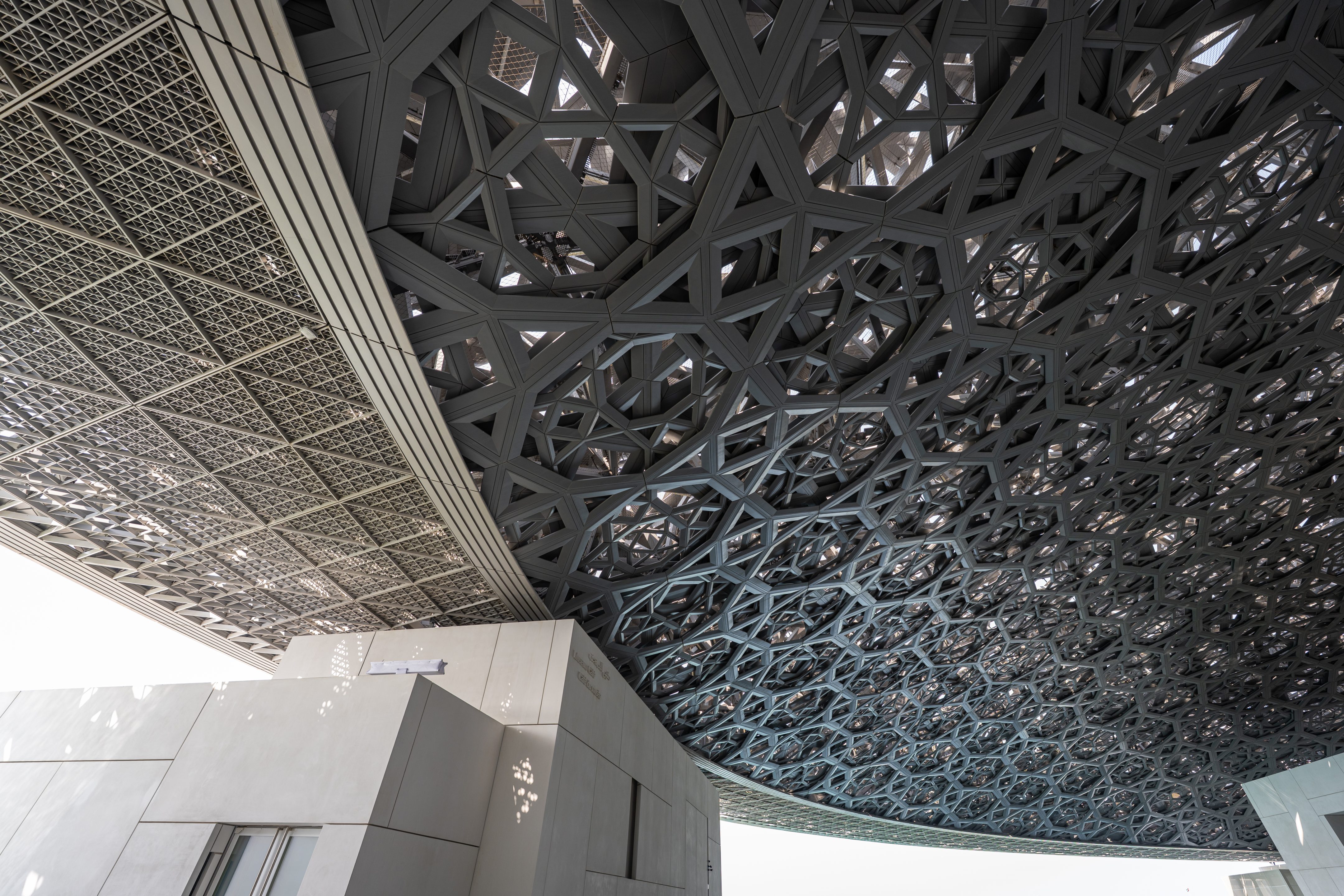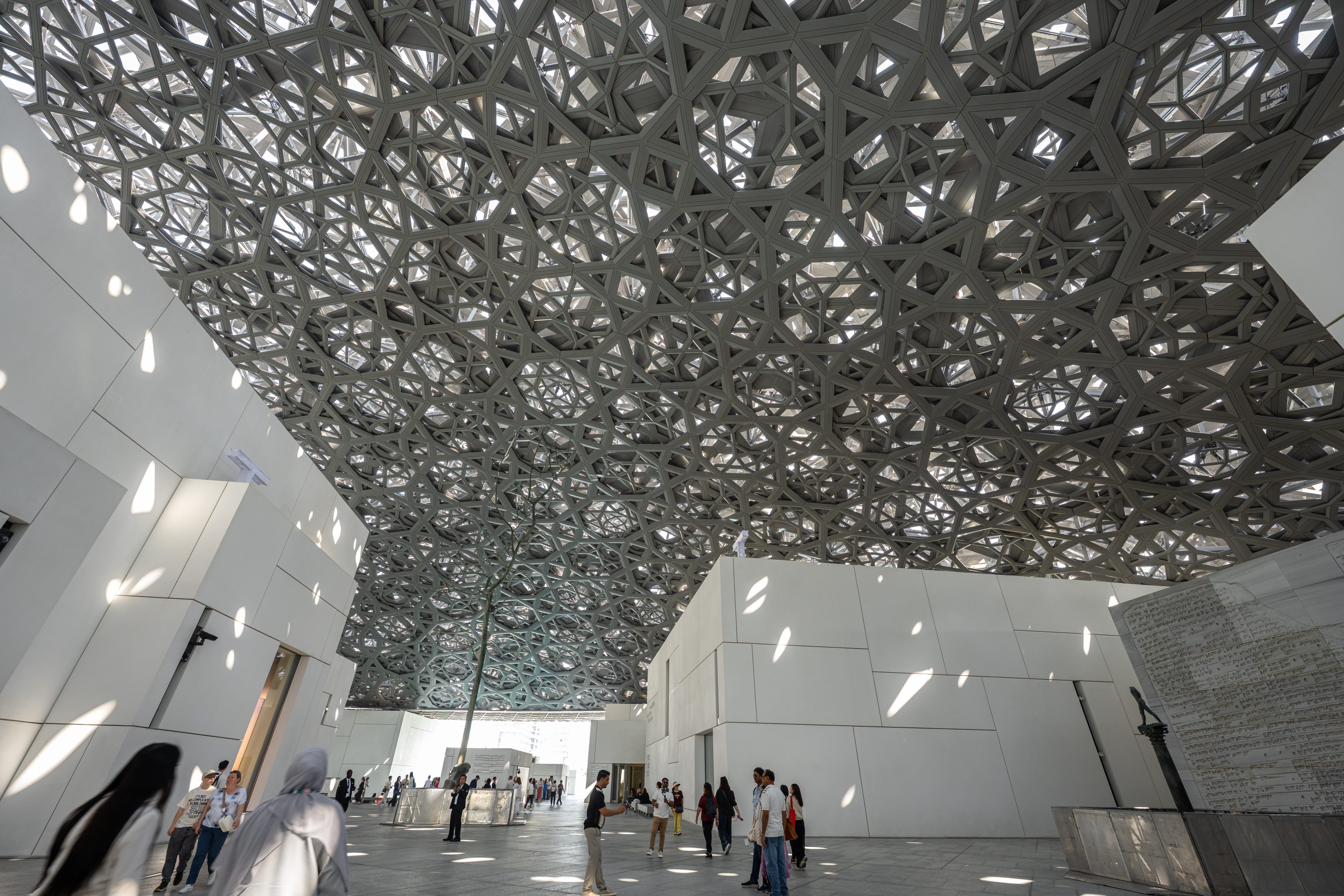 Nach dem Bestaunen der Moschee besuchten wir noch das Louvre Abu Dhabi (Jean Nouvel), welches unter dem sinngemässen Motto „rediscover the global origins of humanity“ einige beeindruckende Exponate unterschiedlicher Weltregionen enthält, für einigermassen kulturbewanderte Westeuropäer gibt es allerdings relativ wenig Neues zu sehen – das eigentliche Highlight ist natürlich die Architektur.