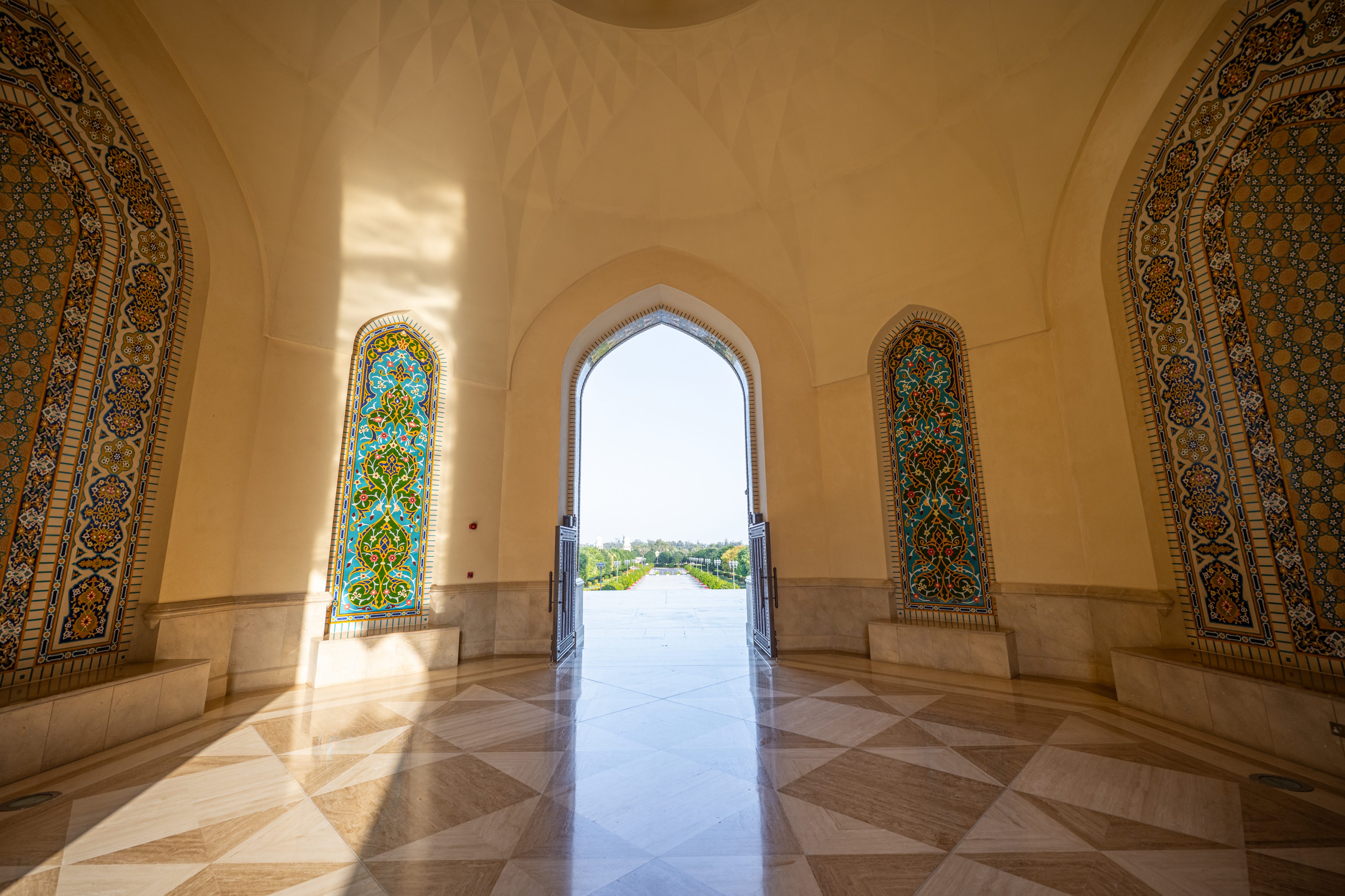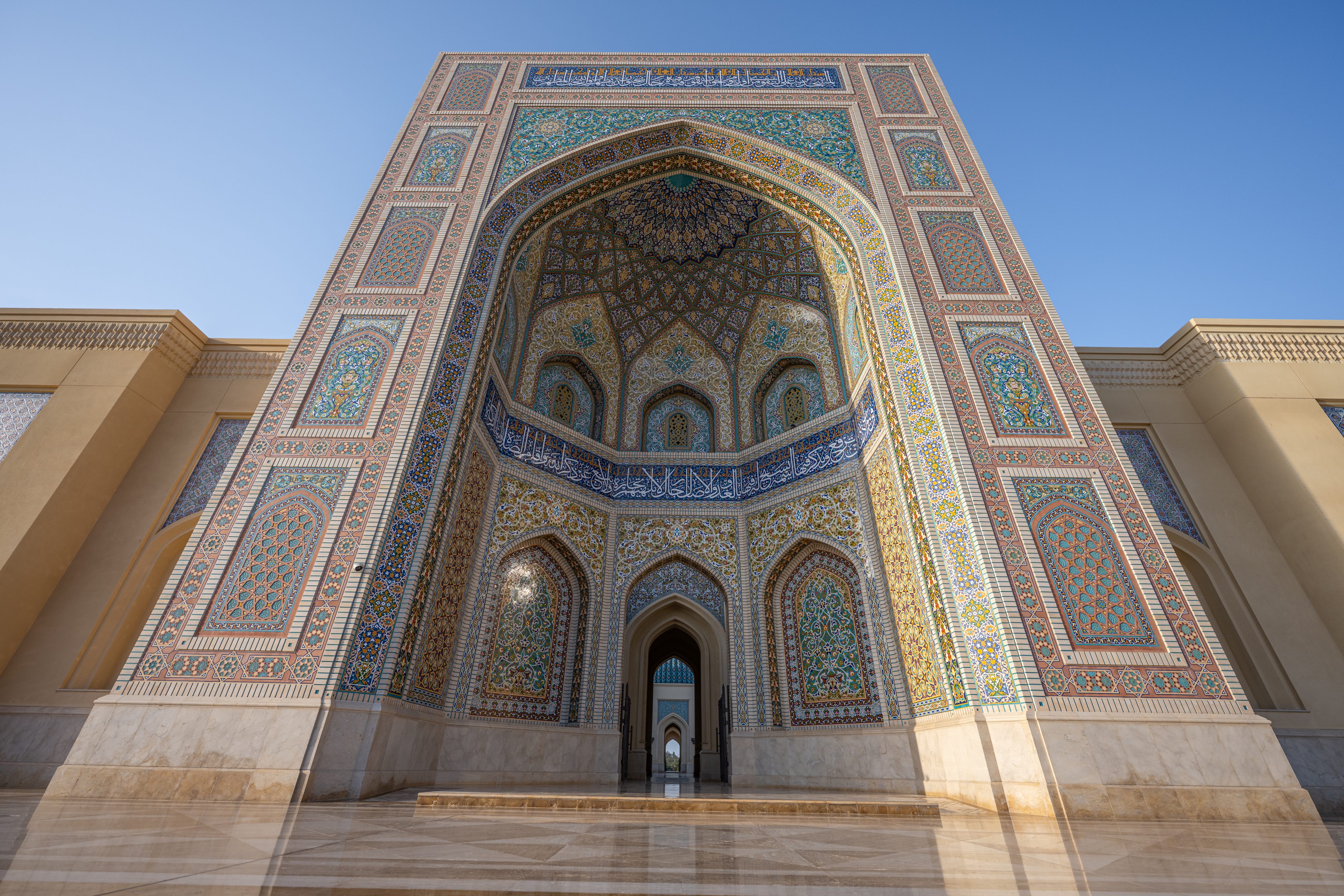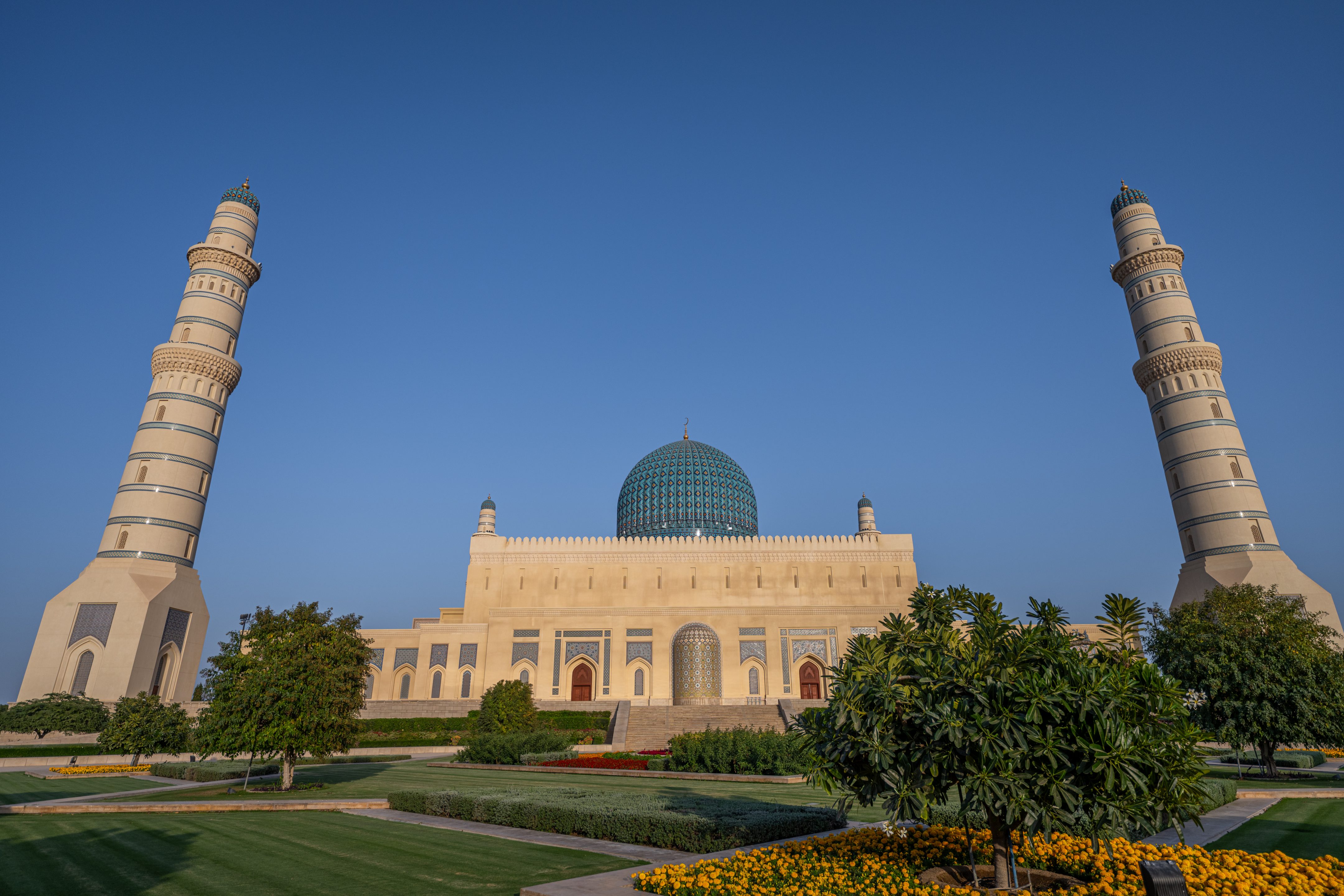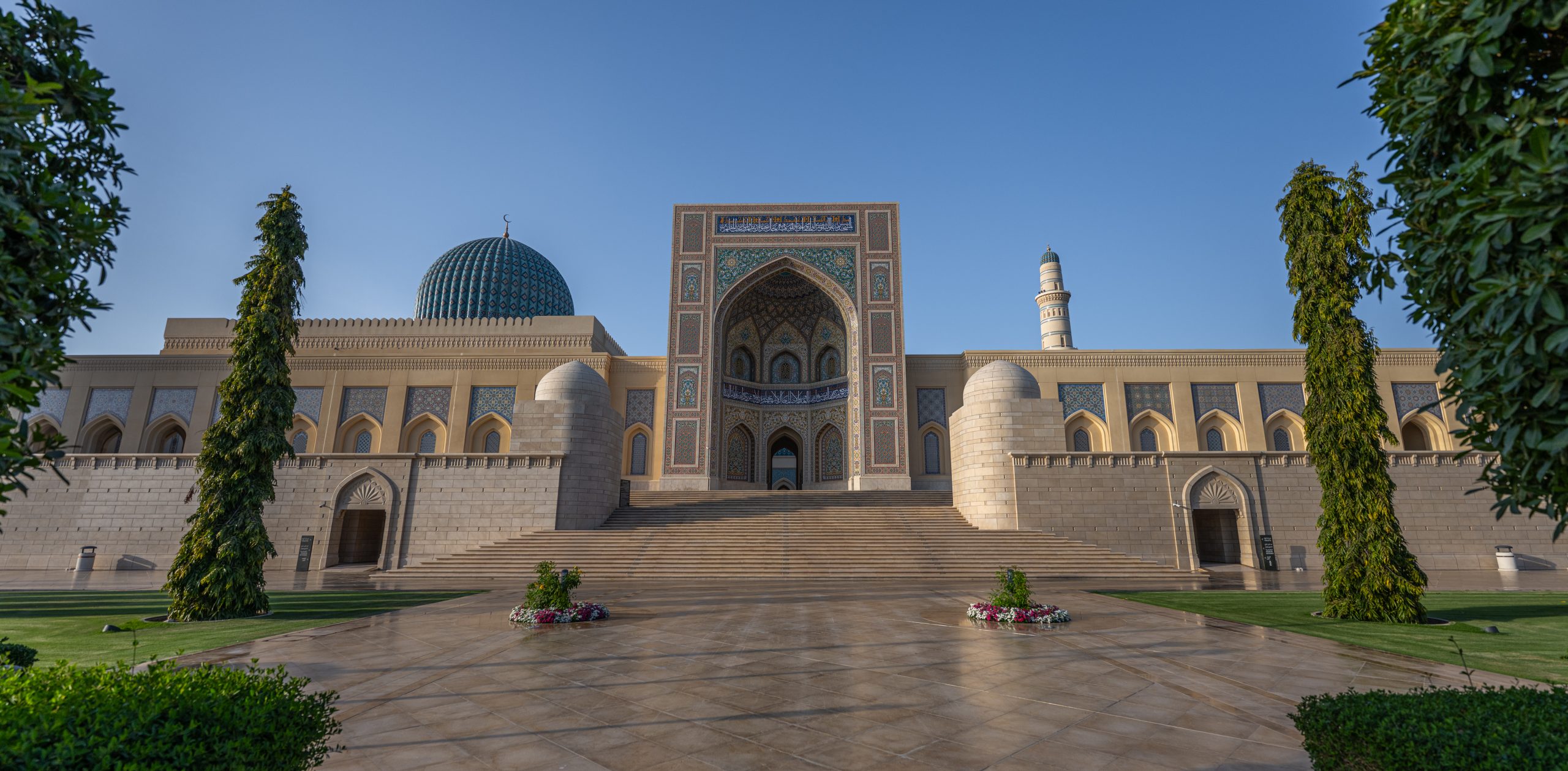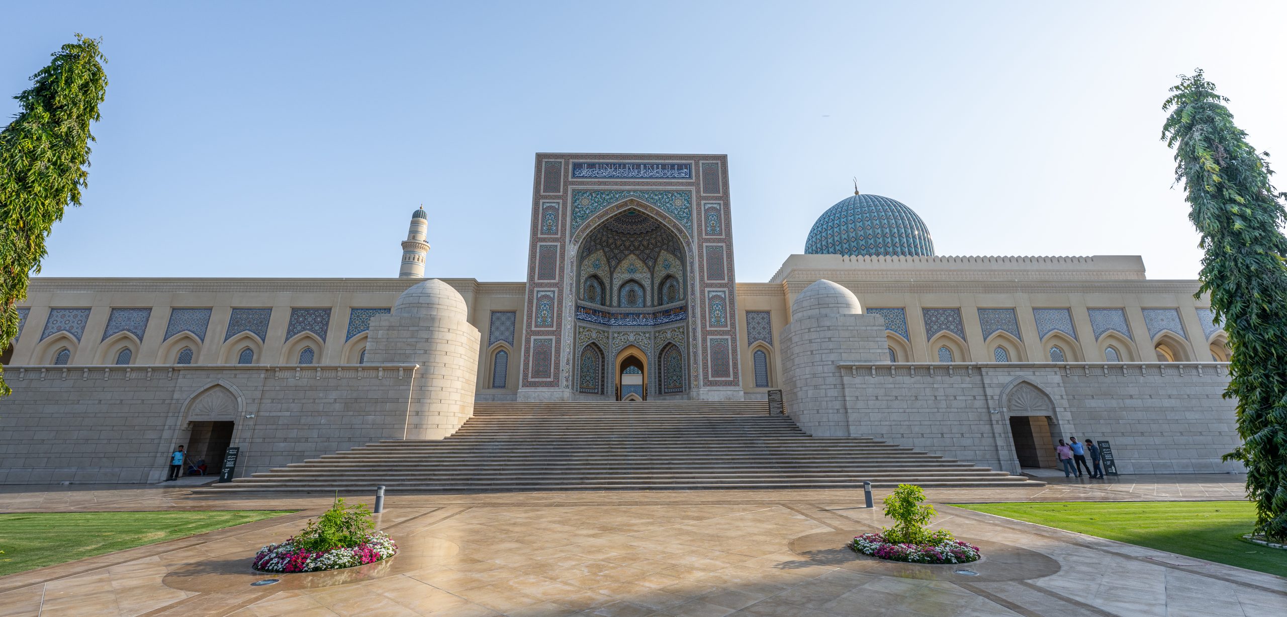 Nach etwa zweistündiger Fahrt, auf welcher wir jeweils das sehr spannende Hörbuch „Klasse“ von Hanno Sauer hörten, erreichten wir die Stadt Sohar im Oman, wo Sultan Qaboos eine einzigartige Moschee erbauen liess, welche mit ihrer aussergewöhnlichen Farbenpracht, Symmetrie, Grösse und Schönheit an Moscheen in Samarkand erinnert (wo wir leider noch nie waren…) und in keinem Oman-Besuch fehlen sollte.